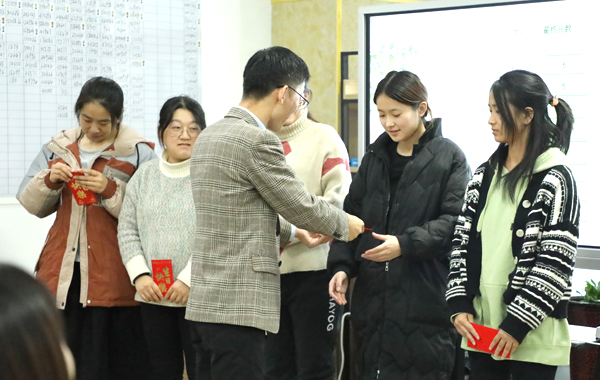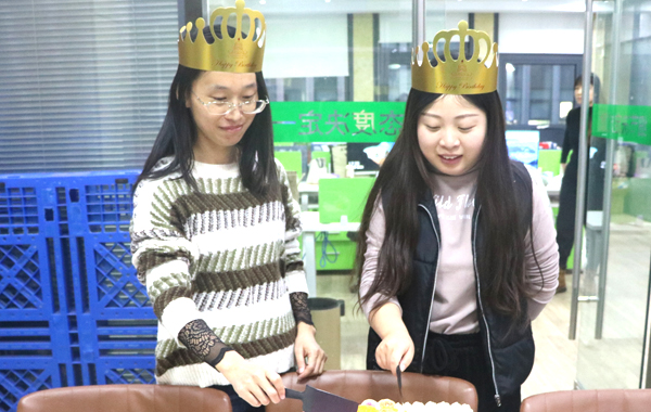公司會每月為過生日的員工準備生日紅包和蛋糕共同慶祝,雖然每次時間不同、參加的人員偶爾有不同,但公司對員工的這份關心和關愛是一樣的。由張總為她們頒發(fā)生日紅包。